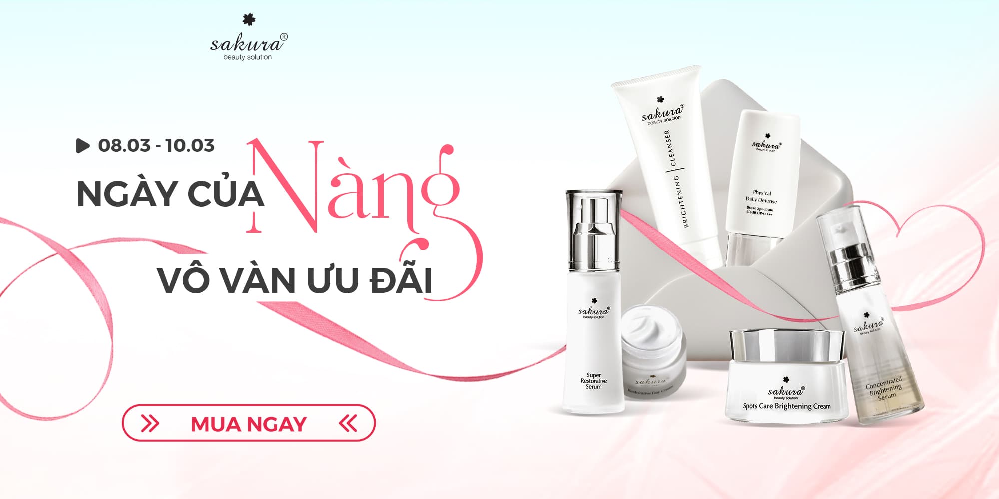Nhân dịp 08.03, Sakura Beauty mến gửi đến Quý khách hàng chương trình ưu đãi đặc biệt - lời tri ân chân thành dành cho vẻ đẹp và những nỗ lực thầm lặng mà phái đẹp vun đắp nên mỗi ngày.