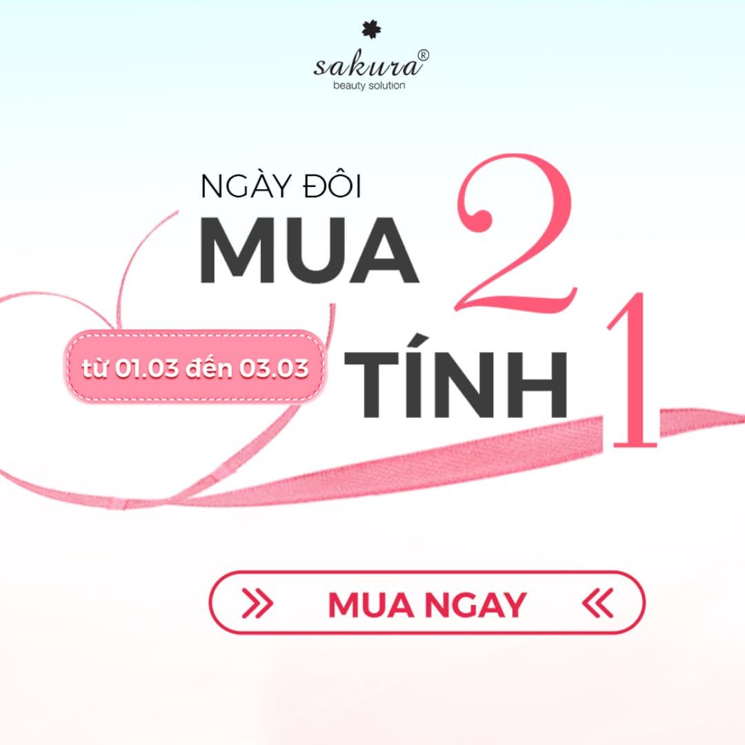 Tháng 3 gõ cửa mang theo những khởi đầu tươi mới. Sakura Beauty gửi đến Quý khách hàng chương trình ưu đãi đặc biệt trong ngày đôi 01.03 - 03.03, giúp bạn đầu tư chăm da khoa học với mức giá ưu đãi hơn bao giờ hết!