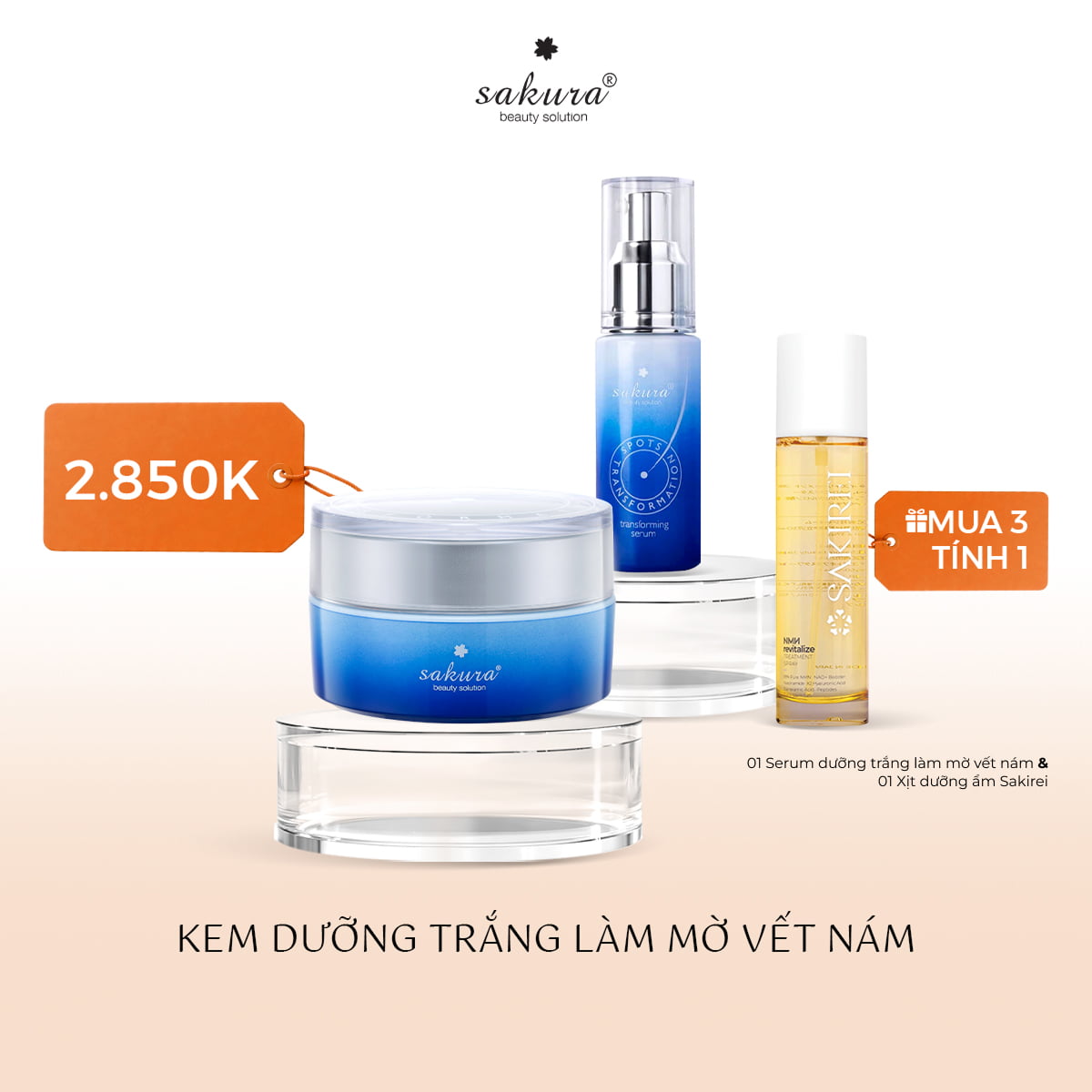✨ Mua 03 kem làm mờ thâm nám, cải thiện tình trạng tăng sắc tố da Sakura Transforming Cream ➡️ Giá ưu đãi: Chỉ 2.850.000đ/ 3 kem.